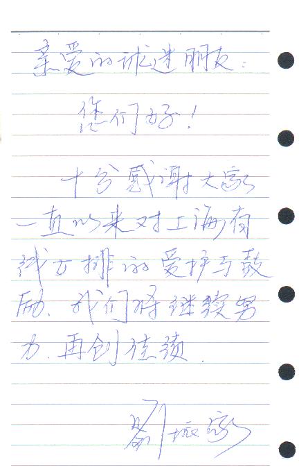 您們好, 十分感謝大家一直的來對上海有線女排的愛護與鼓勵,